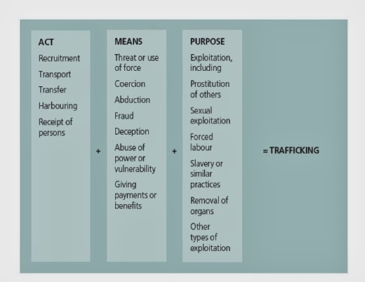 After all, human trafficking boils down to three main components: the act, the means, and the purpose. Consider the following diagram from the United Nations Office on Drugs and Crime: